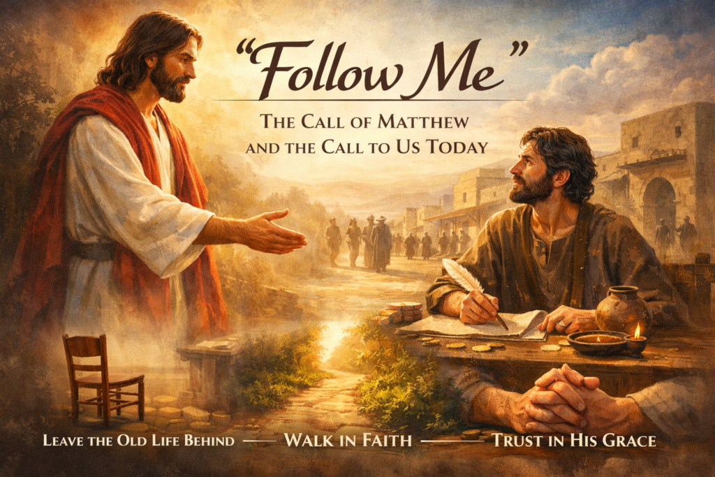 Matthew’s calling reminds us that God’s invitations are often quiet but always powerful. In every season of life, Jesus passes by our hearts and speaks those same words.